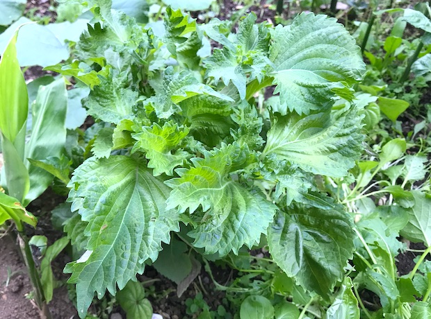 少ないスペースで育ちながら、食卓への貢献度が高いのが薬味系野菜。大葉、バジル、ネギなどはそれぞれ数株植えておけば薬味を使うときに必要量を刈り取れる。とくに使い勝手がよいのが大葉だ。3〜4日休ませれば新たに再生するので、秋に枯れ落ちるまで何度も楽しめる。バジルはちょっと栄養や衝撃にうるさいけれど、大葉は痩せた土でもそこそこ育ち、雑に水をやっても風に吹かれても傷まない(バジルは水やりの水勢が強いだけでも傷む)。