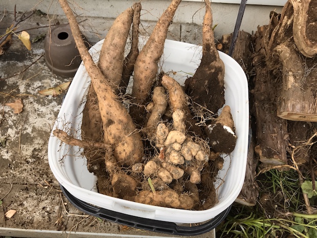 細長く成長する品種は掘るのが大変なので、根塊が丸くなるつくねイモタイプが家庭菜園では扱いやすい。というか、長くなるタイプは絶対に植えてはいけない。1年目は掘るのも楽しめるが、2年目からはげんなりすること間違いなしだ。