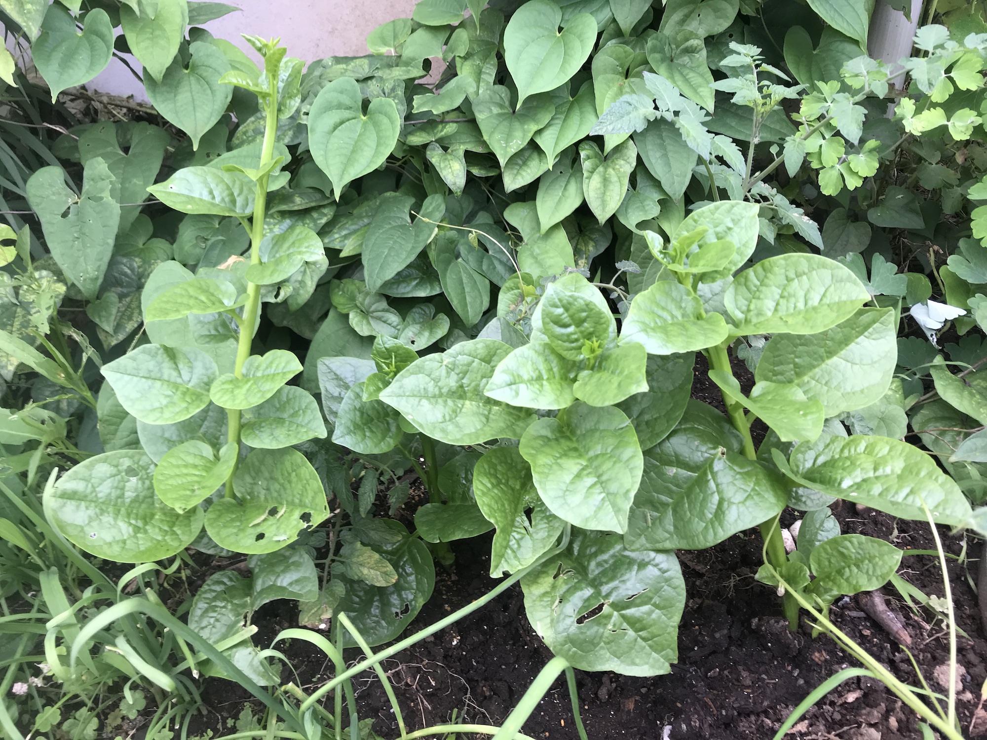 ツルムラサキ。紫系より緑系のほうが育てやすい(気がする)。