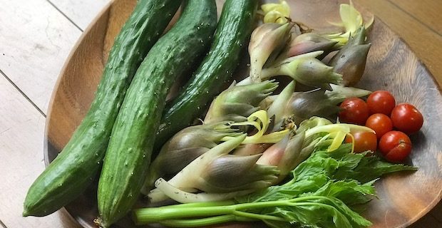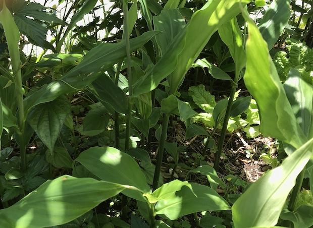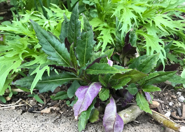 南九州や沖縄でハンダマ、石川では金時草で呼ばれる水前寺菜も手間をかけなくてもよく育つ。苗を手に入れたらぶすっと地面に挿すだけでOK。これも葉をかき取りながら何度でも収穫ができる。株の根本が混んできたら、切り取って別の場所に挿せば根を出して新しい株が育つ。