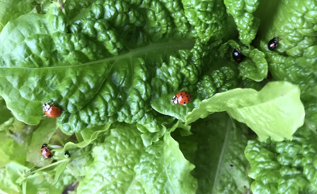 わがやの菜園には、毎日アシナガバチがやってきて青虫を狩り、花の時期にはミツバチがやってきて受粉をしてくれる。これらのサービスは、近所に健全な自然があるから受けられるものだ。目先の収量に目が眩んで害虫に農薬をかけてしまったら、これらの益虫のサービスも受けられなくなり、それどころか自分の敷地の外にある豊かさまで損なってしまう。